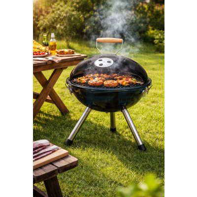 Stylowy i funkcjonalny grill węglowy w klasycznym, kulistym kształcie to idealne rozwiązanie do ogrodu, na taras czy działkę. Dzięki kompaktowej konstrukcji i stabilnym, stalowym nogom sprawdzi się zarówno podczas rodzinnych spotkań, jak i większych przyjęć w plenerze.