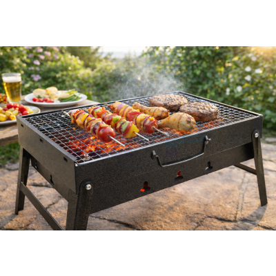 Grill turystyczny jest bardzo poręczny. Możesz go w bardzo łatwy i szybki sposób złożyć do transportu.